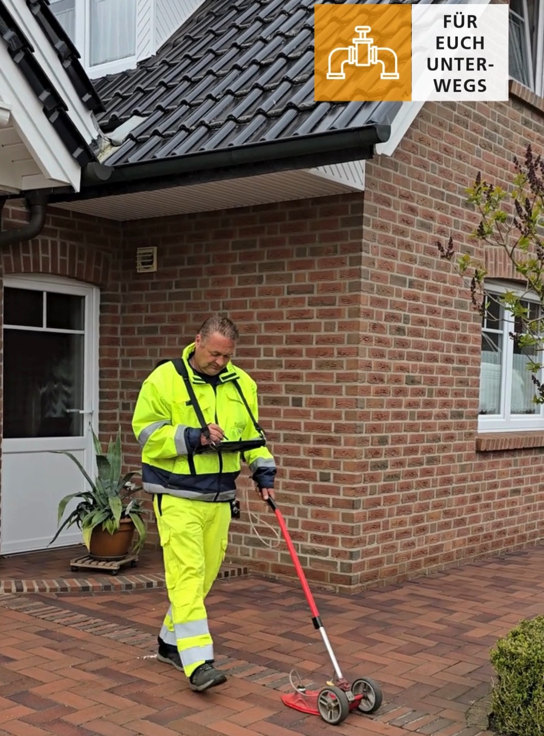 Er bekommt von uns ein digitales Planwerk, welches auf seinem Tablett aufgespielt ist. So weiß er immer genau, wo die Leitungen liegen und er herlaufen muss. Das kann auch schon mal mitten auf einem Acker oder in einem Vorgarten sein.